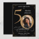 Carte de sauvegarde de date pour 50e anniversaire noir et or. Une célébration d'anniversaire spéciale élégamment conçue avec une photo personnalisée de la personne qui fête son anniversaire et une calligraphie script avec des éléments de fioriture vintage. Assez simple pour s'adapter à une variété de thèmes et de couleurs !