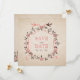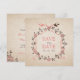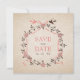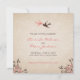 Faire-part de mariage "Enregistrez la date" personnalisable avec une illustration vintage de fleurs de cerisier roses et marron avec des rubans et des tourtereaux sur fond crème texturé ancien.