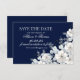 Carte de sauvegarde de la date fleur blanche sakura bleu marine