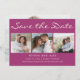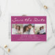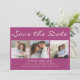 Carte moderne de sauvegarde de date de mariage 2-côtés, 4-photos violette. Contactez-moi pour obtenir de l'aide pour vos personnalisations ou pour demander des produits Zazzle supplémentaires correspondant ou coordonnant pour vos événements spéciaux.