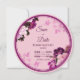 Célébrez l'amour avec notre élégante carte de sauvegarde de mariage ronde présentant une bague magenta vibrante encerclant de beaux bouquets de fleurs violettes. Orné de pivoines blanches et magenta, de fleurs de cerisier et de feuilles vertes luxuriantes, ce design capture le charme romantique. Parfait pour annoncer votre jour spécial — avec une image arrière personnalisable pour un toucher personnel.
