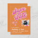 Marquez le début de votre voyage vers l'éternité avec notre carte "Save the Date" rétro rose et orange ! Mélangeant l'attrait durable du design rétro avec une touche fraîche et contemporaine, ce design trouve l'équilibre parfait entre nostalgie et élégance moderne. Les teintes vives de rose et d'orange insufflent à votre "Save the Date" une énergie joyeuse et dynamique. Texte entièrement personnalisable et téléchargez une photo chérie pour créer un souvenir unique et personnel.