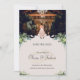 Célébrez votre mariage imminent avec cette carte "Save the Date" chaleureuse et intime, parfaite pour les mariages cosy, rustiques ou aux chandelles. Représenant un marié et une mariée sous un lustre romantique dans un lieu aux accents de bois, ce design respire l'élégance et le charme. Complété par une verdure douce et des alliances en or, c'est une façon intemporelle d'annoncer votre jour spécial.