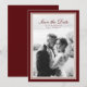 Carte de sauvegarde de photo de chute de Bourgogne dans un design intemporel inspiré de l'argent ancien — une annonce raffinée pour des mariages élégants d'automne et d'hiver. Inspiré par l'esthétique de luxe discret, de patrimoine immobilier et de classicisme éditorial. Parfait pour les couples qui aiment la papeterie traditionnelle avec une caractéristique photo romantique. Style avec détails de ruban de velours, décor de chandelles et fleurs de Bourgogne profondes pour un mariage d'automne sophistiqué.