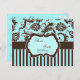 Cette carte de sauvegarde en damas floral rayé bleu aqua, marron et blanc correspond à l'invitation de mariage présentée ci-dessous. Si vous avez besoin d'autres articles assortis, veuillez envoyer votre demande par courriel à niteowlstudio@gmail.com.
