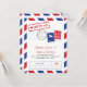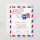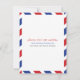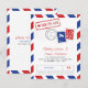 Carte de Save the Date Inspirée de l'Airmail en Rouge Clair et Bleu Royal. Timbre Faux et Marquages de Port pour un Mariage sur le Thème du Voyage.