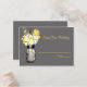 Parfait pour un mariage de style champêtre ou peut-être que vous aimez juste Mason Jars! Vieux Mason Jar vintage accroché à un crochet avec des fleurs sauvages de la campagne. Un arrière - plan gris avec dessin noir d'un pot Mason rempli de fleurs sauvages jaunes et de marguerites blanches. Si vous avez des questions sur ce design ou si vous voulez un changement de couleur, envoyez-moi un courriel à paula@labellarue.com Vérifiez également que les cartes INVITATION, RÉCEPTION et RSVP correspondent!