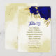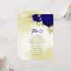 Belle carte de sièges mariages avec fleurs bleues royales et feuilles or. Les détails de la parties scintillant d'or sont simulés. POUR PLUS DE PRODUITS CORRESPONDANTS voir la collection ci-dessus ou contactez-moi