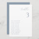 Carte de sièges minimaliste chic contemporaine, bleu poussiéreux, mariage.