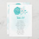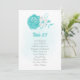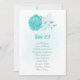 fleurs romantiques turquoises et blanches sur une belle carte de numéro de table de couronne. Les détails de la parties scintillant sont simulés.