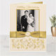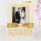 Cette carte de voeux géante de 21,5x28 cm de couleur ivoire et or avec motifs floraux et volutes pour la signature des invités au 50e anniversaire de mariage comporte un ruban or IMPRIMÉ et un médaillon ivoire et or imprimé. Utilisez-la comme un livre d'or à la fête pour que vos invités puissent y écrire. Vous pouvez également l'utiliser comme un souvenir commémoratif de cet événement spécial. Elle comporte également un emplacement au recto pour une photo de mariage du couple anniversaire. ****VEUILLEZ NOTER que tout sera imprimé tel qu'il apparaît sur votre écran. Personne ne modifiera votre texte. Si vous changez de police, la différence de taille peut faire que votre texte soit tronqué s'il est trop proche d'un bord. AUSSI, veuillez noter que tout est imprimé à plat. Il n'y a aucun élément en relief ou gaufrage quel qu'il soit sur cette carte. C'est une carte de voeux standard avec un recto brillant et une finition mate à