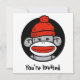 Que vous ayez une fête d'anniversaire d'enfant ou un adulte amusant se réunir; envoyez cette carte de singe chaussettes / invitation et tout le monde se présentera. Ce design graphique amusant, heureux, rétro, d'un singe à chaussettes fait main apportera un sourire à tous ceux qui le voient. Vous pouvez customiser et personnaliser avec des informations sur l'événement, nom, adresse ou devis. Super enregistrer la carte de date.