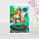 Sirène irlandaise aux longs cheveux cuivrés et à la queue verte, au haut et au chapeau tenant un trèfle
