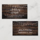 Offrez à vos invités un moyen facile de rester dans la boucle sur toutes vos préparations de mariage avec ce joli, rustique mariage site internet détail fiche insert. D'un côté il y a une jolie superposition graphique qui dit "site mariage" dans une police de caractères élaborée, avec des fleurs et des tourbillons. En-dessous sont des espaces modèles pour un message personnel et votre adresse de site Web. À l'arrière, vous trouverez des champs permettant d'ajouter vos noms et votre date de mariage. Tout le texte est blanc et il a été placé sur une image arrière - plan texturée en bois brun foncé avec beaucoup de texture rugueuse et des lignes horizontales. Pour plus de festivité, j'ai aussi ajouté un graphique qui simule des cordes de lumières scintillantes, vives et blanches en haut. Tous les éléments de conception sont dans des couches séparées et déverrouillés pour ceux qui aiment faire plus de leur propre personnalisation. N'hésitez pas à contacter si vous avez des demandes spéciales ou avez besoin d'aide pour customiser. // 57 // Conçu par Melody Watson pour Paper Muserie.