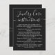 Cette carte d'instructions pour l'entretien des bijoux, girly et glamour, est la façon parfaite de styliser votre emballage et d'ajouter votre propre personnalité et votre esprit personnel. Il représente une police moderne audacieuse associée à une typographie blanche cursive et chic écrite à la main sur un simple arrière - plan noir. Au verso, il comprend des informations de contact qui peuvent être modifiées complètement ou personnalisées à vos détails. Il est professionnel, élégant et élégant; le moyen idéal de faire de la publicité pour votre entreprise et de styliser votre matériel de marketing et de publicité pour vos clients. **Des cartes de bijoux assorties sont disponibles. Contactez le designer. ***REMARQUE IMPORTANTE DE CONCEPTION : Pour toute demande de conception personnalisée comme les demandes de produit correspondant, les changements de couleur, les changements de placement ou toute autre demande de modification, veuillez cliquer sur le bouton "message" ou envoyer un courriel au concepteur directement à lafemme.art@gmail.com. Vous pouvez même lui envoyer par courriel une demande pour un design entièrement personnalisé et nouveau.
