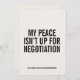 Rappelez-leur avec audace où vous vous tenez avec cette carte puissante avec l’expression "MON PAIX N’EST PAS PRÊT À LA NÉGOCIATION". Que vous fixiez des limites, que vous envoyiez de l'amour, ou que vous disiez simplement votre vérité, cette carte personnalisable est le cadeau idéal de déclaration personnelle. Idéal pour les amoureux de l'autosoins, qui ont donné du pouvoir aux femmes, aux défenseurs du bien-être mental et à tous ceux qui revendiquent leur paix.