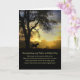 Une belle carte de souvenir d'un père aimé pour la fête des pères. Un cheval et un chêne en silhouette dans un beau lever de soleil.