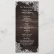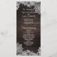 Carte de support de programme de mariage en bois rustique foncé et dentelle. Articles assortis disponibles.