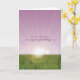 Carte de sympathie avec champ d'herbe, ciel violet et rayons de soleil.