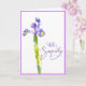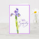 Exprimez vos condoléances profondes simplement et d'une manière élégante avec cette carte de sympathie simple d'iris. Un iris élégant d'aquarelle avec les mots simples "avec la sympathie" ; à l'intérieur d'une citation mobile par le poète célèbre Emily Dickinson.