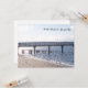 Cette note de sympathie ou de condoléances est plate (non pliante) et comporte une photo de pilotis et de la mer, et une Écriture chrétienne du livre de l'Apocalypse : Dieu effacera toutes les larmes de leurs yeux; et il n'y aura plus de mort, ni de tristesse, ni de pleurs, ni de douleur.