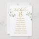 Carte de table à calligraphie dorée et verdure
