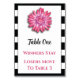 Joli design moderne noir, blanc et rose pour les joueurs de Bunco. Installez-les sur chaque table pour aider les joueurs à passer d'une table à une autre après le jeu. Carte de table n° 1