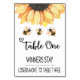 Aidez les joueurs de Bunco à passer de table en table avec des cartes de table Bunco fantastiques. Celui-ci est pour les Queens Bees of Bunco. Tournesol d'aquarelle et abeilles faites savoir aux joueurs qu'ils sont à la table 1. Quand le jeu arrête les gagnants restent à la table un et les perdants passent à la table trois.