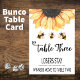 Aidez les joueurs de Bunco à passer de table en table avec des cartes de table Bunco fantastiques. Celui-ci est pour les Queens Bees of Bunco. Tournesol d'aquarelle et abeilles faites savoir aux joueurs qu'ils sont à la table 1. Quand le jeu arrête les perdants restent à la table trois et les gagnants passent à la table deux.
