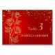 Carte de table pour toutes occasions avec des roses dorées stylisées et des confettis sur un fond dégradé rouge. Vous pouvez changer le numéro de table selon vos besoins (2, 5...7...10...) - à chaque fois une nouvelle carte, et ajouter toutes ces cartes à votre panier.