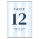 Cette carte de table de mariage élégante présente un design moderne et épuré avec des bandes verticales alternées bleu clair et blanches. Le point focal est la typographie serif gras affichant le numéro de table "12", complétée par le mot "TABLE" en haut dans une police serif de poids moyen. En dessous, des champs de texte personnalisables permettent une personnalisation avec les noms et les dates dans un style sans-serif simple. L'esthétique globale dégage de la sophistication et de la clarté, ce qui la rend parfaite pour les occasions formelles comme les mariages.