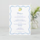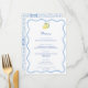 Ce design de menu fait partie d'une nouvelle collection basée sur ma gamme d'invitations "Amalfi" au citron très populaire. L'invitation est simplifiée, avec une bordure ondulée, un simple citron avec des feuilles et un verso de carreau peint à la main en bleu et blanc. Là où se trouve le mot "menu", vous pouvez avoir le nom de l'invité à la place, de sorte que les cartes de menu puissent également servir de cartes de table.