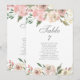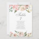 Des fleurs de pivoine aquarelles rose pâle et ivoire élégantes encadrent le haut et le bas de cette charmante carte de table de mariage printanière avec les noms du plan de table. Les brindilles de feuilles vert sauge ornent le milieu des pivoines florales pêche qui entourent l'écriture romantique. Un magnifique bouquet de diamants entoure les initiales du couple au dos de cette délicate invitation de mariage de jardin.