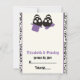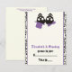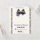 Carte de table de mariage Halloween crânes élégants violet, représentant un couple de crânes noirs mariés sur fond ivoire et une bordure à motif de crânes. Le marié porte un chapeau violet et la mariée un nœud violet. Pliez la carte le long du centre. Besoin d'aide ou d'une palette de couleurs différente ? Cliquez simplement sur le bouton Contact sous le produit et demandez-le !