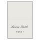 Cartes de table de mariage élégantes classiques avec nom de l'invité personnalisé et numéro de table sur fond beige moderne.