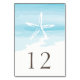 Carte de table de mariage sur la plage