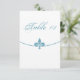 Nommez vos tables de réception avec une carte de table Fleur de Lis Turquoise. La conception de la carte de table comporte une fleur de lis turquoise. Papier à lettres mariage supplémentaire disponible avec cette conception aussi.