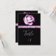 Nommez vos tables de réception avec une carte de table Rose Amethyst Réception. Le design de la carte de table comprend un rose améthyste orné d'une bannière florale de fantaisie. Personnalisez avec les noms du marié et de la mariée avec la date du mariage. Papier à lettres mariage supplémentaire disponible avec cette conception aussi.