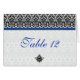 Utilisez l'option Personnaliser pour modifier le numéro de table de ces cartes de table damassées bleu, noir et blanc royal. REMARQUE : Vous DEVEZ modifier le numéro de table sur chaque carte et ajouter un de chaque numéro à votre panier. Si vous souhaitez effectuer des modifications plus importantes, notamment modifier la police, la couleur de police ou la taille de police, utilisez l'option personnaliser.