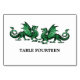 Parfait pour un imaginaire sophistiqué jeu de table mariage à thème est ce nerdy et unique Elegant Dragons Mariage carte numéro de table avec une paire vibrante de dragons verts. Facile à customiser, il suffit d'ajouter le ou les numéros de table appropriés dans le champ de texte fourni. Cliquez sur "Customiser" pour trouver d'autres options de personnalisation.
