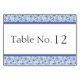Carte de table à motifs florentine simple et élégante dans les tons bleu foncé et bleu poudre plus clair avec des détails en miroir de part et d'autre. Modifiez le numéro de table de chaque carte un par un et ajoutez séparément à votre panier au fur et à mesure que vous allez pour autant de tables que vous le souhaitez. Disponible en 5 autres couleurs. Voir aussi d'autres articles de papeterie mariage correspondants dans ce design chez MonogramandsMonikers sur Zazzle.