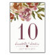 Carte de table Mariage floral Burgundy Marsala Fal