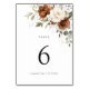 Carte de table Mariage Floral Rust Greenery. Mariage Floral Burnt Orange Numéro de tableau. Carte de numéro de table Mariage Eucalyptus Green Moderne