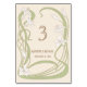 Cartes de table mariages au design d'inspiration Art nouveau, avec nénuphars blancs aux feuilles verts, formant un cadre fluide organique autour de votre texte personnalisé, sur un arrière - plan beige.