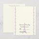 Carte de table mariage Paris tour Eiffel lilas. Un design élégant plein de classe et de finesse, avec la tour Eiffel en lilas dans une bordure damassée sur fond ivoire. Pliez la carte au centre.