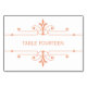 Simple et élégant Fancy Ornamental Mariage Numéro de table Carte en orange et blanc avec une bordure fleurie de style art déco sophistiquée. Facile à customiser, il suffit d'ajouter le ou les numéros de table appropriés dans le champ de texte fourni. Cliquez sur "Customiser" pour trouver d'autres options de personnalisation.