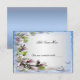 Jolie fleur violette avec un papillon et un fond bleu. Faites savoir à vos invités où ils sont censés s'asseoir avec cette jolie carte de table. Personnalisez la carte en modifiant le texte dans les champs prévus à l'avant et à l'arrière. Vous pouvez changer le style de police, la taille, la couleur, ainsi que le type et le style de papier.