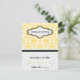 Carte de table personnalisée de mariage en damas noir jaune aqua. La partie supérieure est à motif damassé noir et blanc délavé et la partie arrière est jaune et blanc. Une bande noire et une aqua séparent les deux parties. Votre texte est saisi sur une étiquette élégante avec un contour blanc et jaune. Pliez la carte le long du centre.