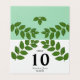 Belle carte de table pliable de mariage blanche avec des feuilles de laurier vertes. Le verso comporte trois feuilles de laurier sur fond vert émeraude.