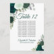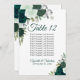 Ces élégantes cartes de table de mariage présentent un design boho chic rustique avec des roses d'aquarelle peints à la main dans les tons vert émeraude et sauge. La carte comprend une liste de dix noms afin que vos invités puissent facilement trouver la bonne table.